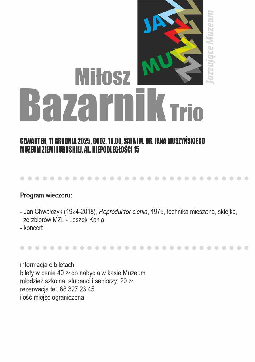 11.12.2025 o godzinie 19.00 w Muzeum Ziemi Lubuskiej odbędzie się kolejne spotkanie z cyklu Jazzujące Muzeum!