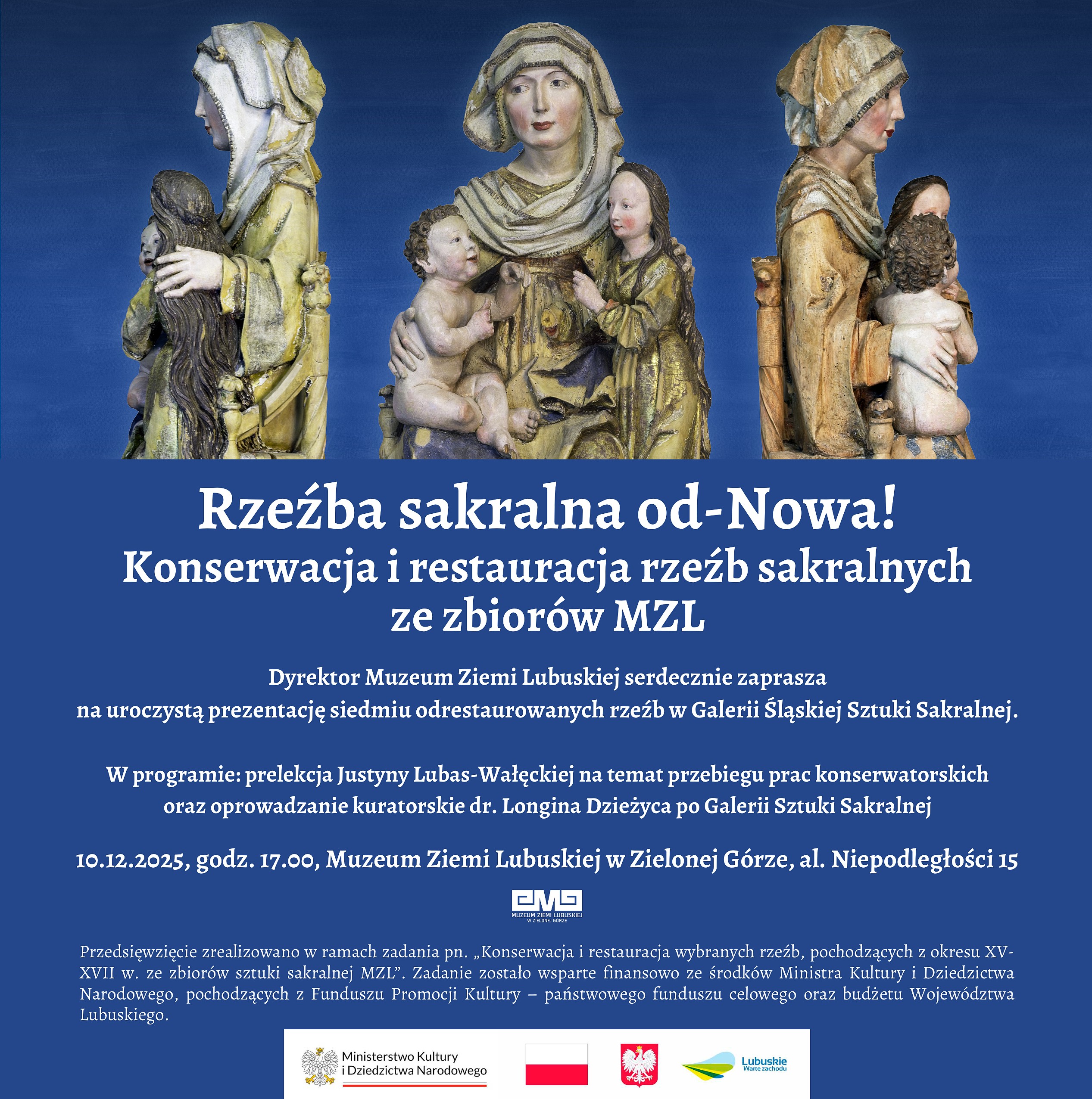 Przedsięwzięcie zrealizowano w ramach zadania pn. „Konserwacja i restauracja wybranych rzeźb, pochodzących z okresu XV-XVII w. ze zbiorów sztuki sakralnej MZL”. Zadanie zostało wsparte finansowo ze środków Ministra Kultury i Dziedzictwa Narodowego, pochodzących z Funduszu Promocji Kultury – państwowego funduszu celowego oraz budżetu Województwa Lubuskiego.