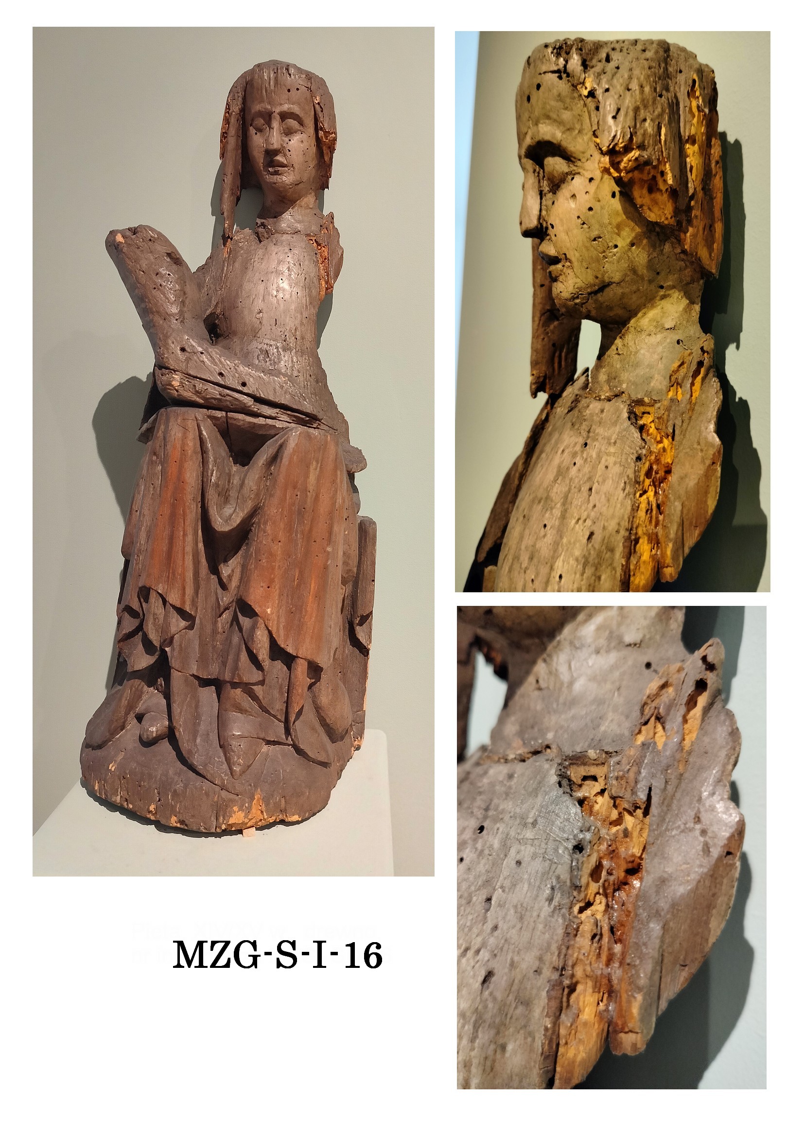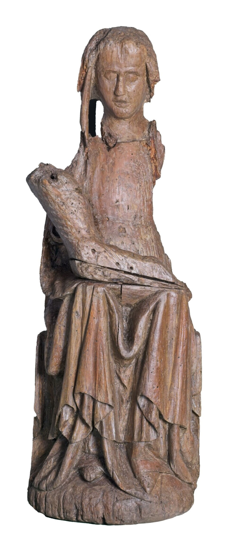 Wczesnogotycka rzeźba wykonana z drewna przedstawia siedzącą hieratycznie Marię, trzymającą na kolanach martwe ciało Jezusa zdjęte z krzyża, z którego zachował się jedynie korpus i cześć nóg. Rzeźba opracowana surowo, jedynie dolna partia szaty układa się w drapowane fałdy. Dzieło to reprezentuje nurt mistyczny w plastyce gotyckiej tzw. Vesperbild (obraz nieszporny) , należy do wąskiej grupy rzeźb ukazujące ciało Chrystusa w układzie schodkowym, znanych w kulturze niemieckiej (gł. Frankonia i Turyngia). Reprezentuje nurt Doloryzmu obecny w XIV i XV wieku eksponujący kult Męki Pańskiej i Matki Boskiej Bolesnej.