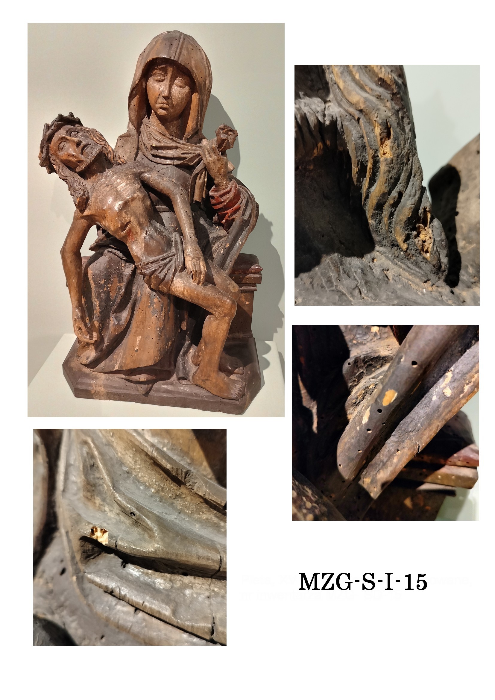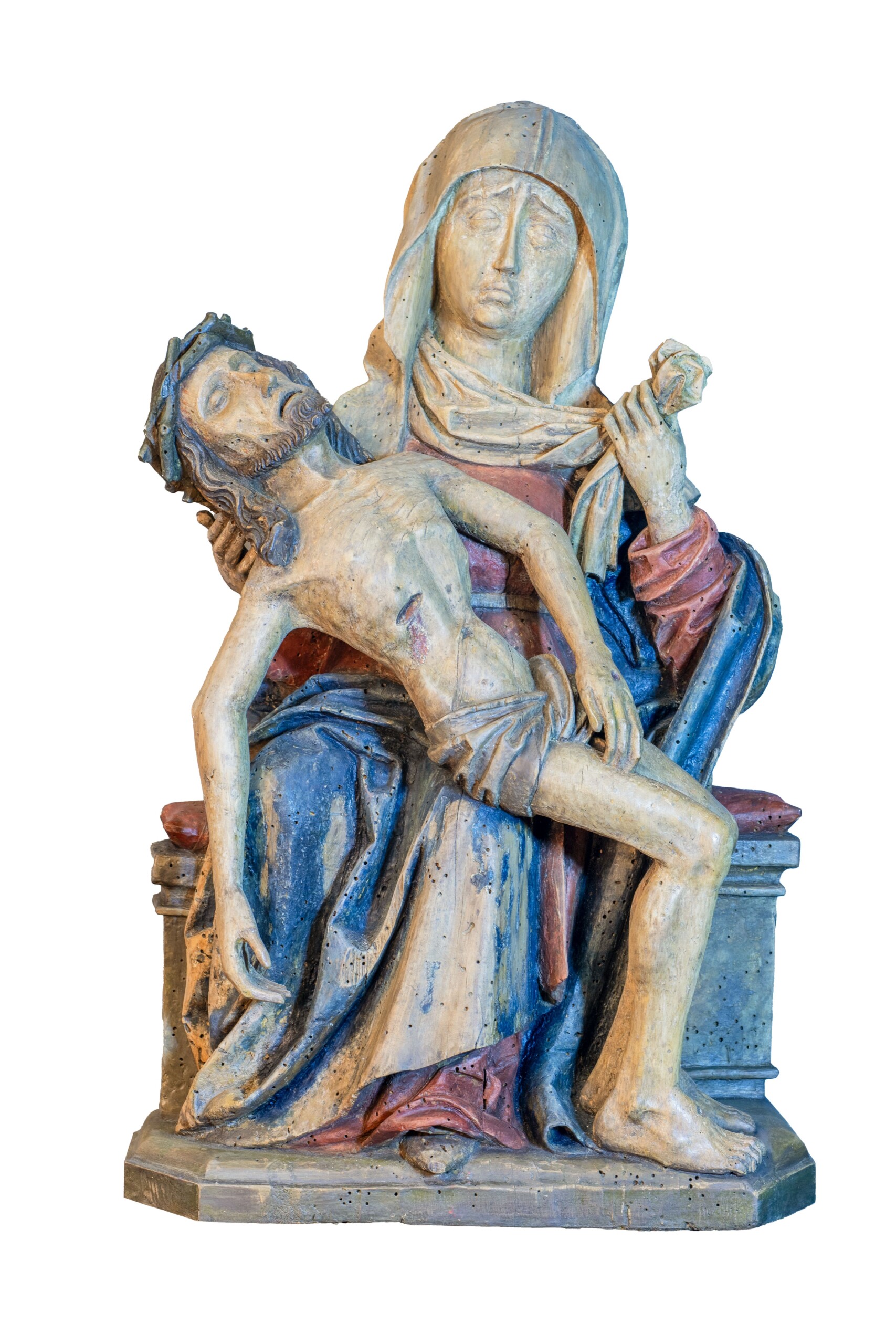 Wolnostojąca, wykonana z drewna rzeźba przedstawiająca siedzącą hieratycznie Madonnę trzymającą na kolanach martwe, umęczone ciało Chrystusa. Częściowo pokrywa ją barwna polichromia. Przedstawienie jest naturalistyczne – Marię ukazano jako dojrzałą kobietę o twarzy przepełnionej grymasem boleści, zaś Jezusa jako emanującego spokojem, którego bezwładne cało spoczywa na kolanach opłakującej matki. Pochodzi ze zbiorów dawnych Muzeum Zielonej Góry. Dzieło wpisuje się w estetykę kanonu gotyckiej rzeźby tzw. stylu pięknego, charakteryzującego się miękką linią opracowania draperii oraz szat.